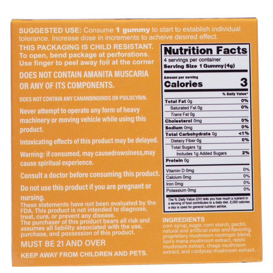 - 800mg proprietary mushroom blend per piece